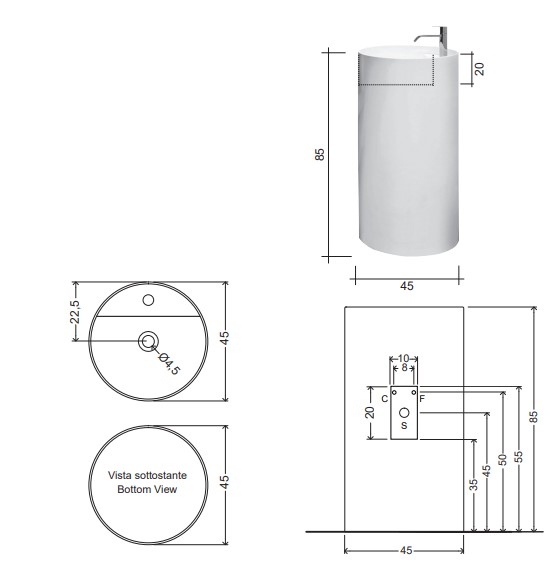 NIC Design Ovvio Umywalka wolnostojąca Ø45 cm Biały 001455.001