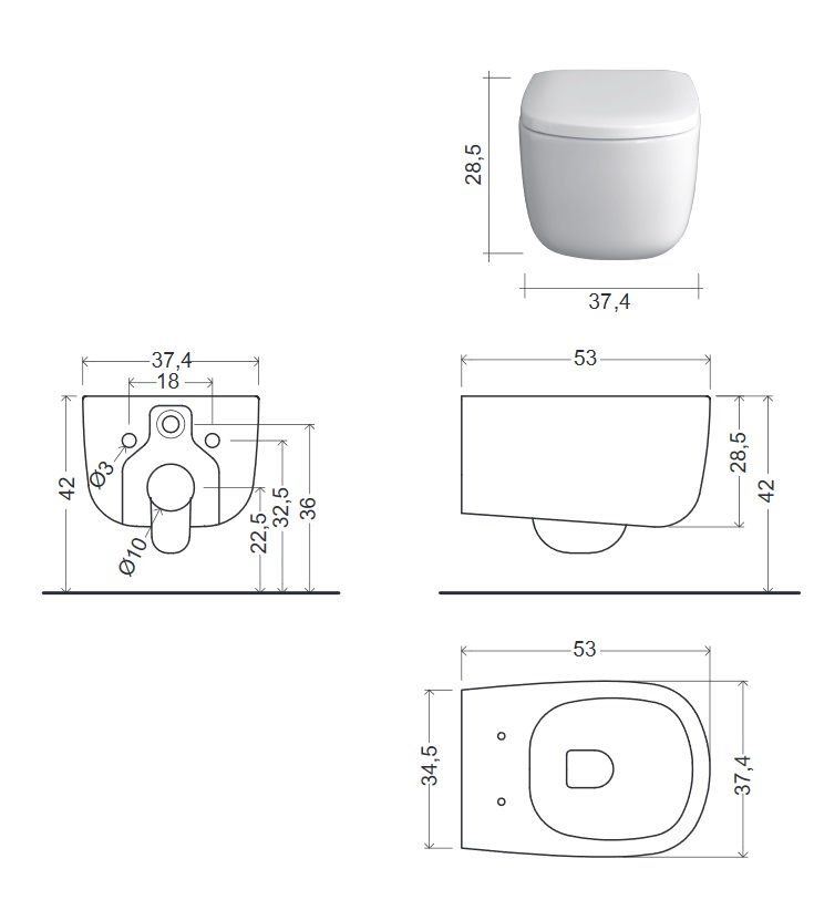NIC Design Ovvio Miska WC wisząca Rimless Biały 003479.001