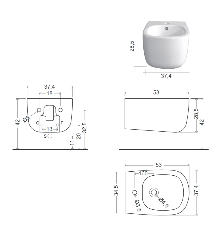 NIC Design Ovvio Bidet wiszący Biały 004434.001