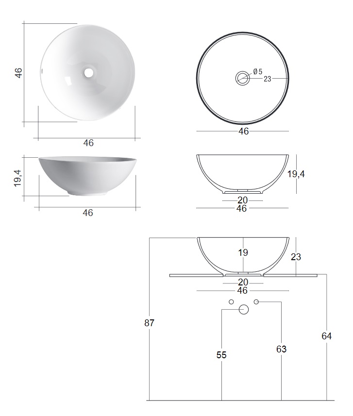 NIC Design Ciotole Umywalka nablatowa Ø46 cm Biały 001001.001