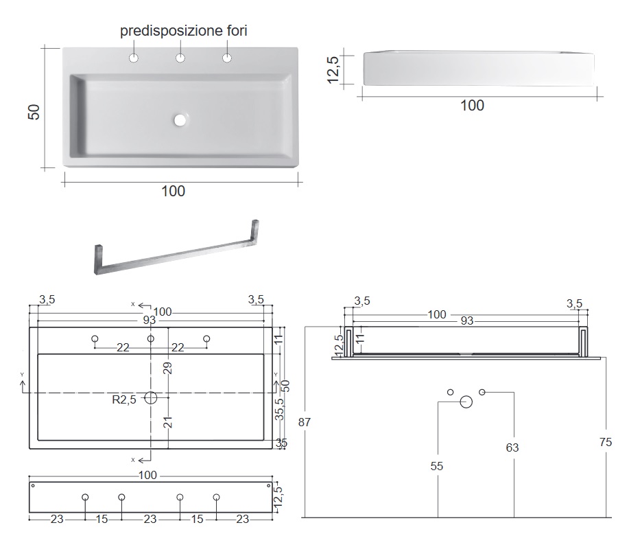 NIC Design Cool Umywalka nablatowo/ścienna 100x50 cm Biały 001232.001