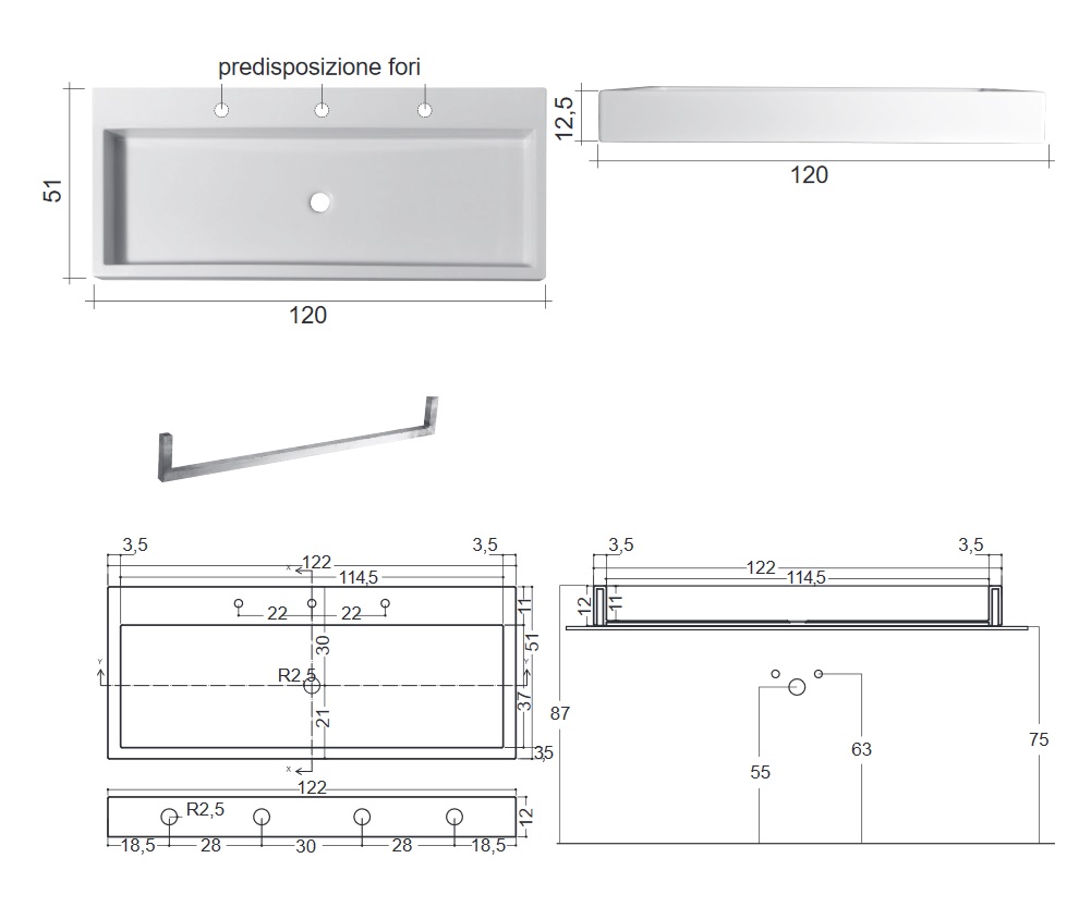 NIC Design Cool Umywalka nablatowo/ścienna 120x51 cm Biały 001233.001