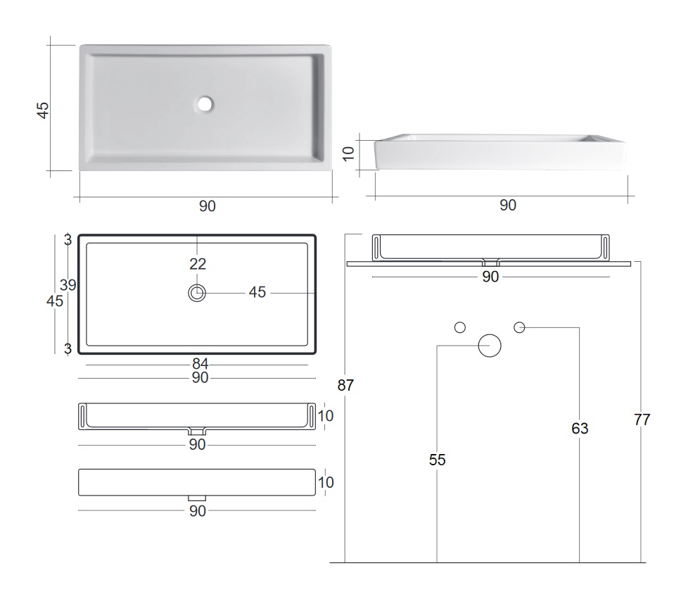 NIC Design Canale Umywalka nablatowa lub ściena 90x45 cm Biały 001128.001
