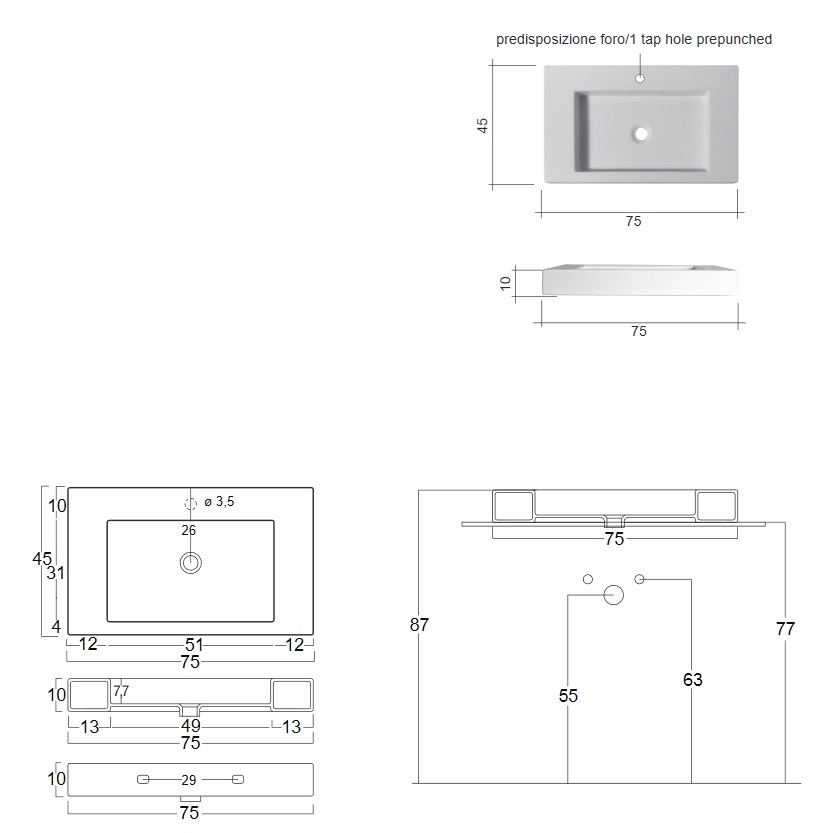 NIC Design Cult Umywalka ściena 75x45 cm Biały 001132.001
