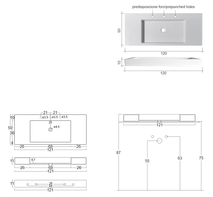 NIC Design Cult Umywalka ściena 120x50 cm Biały 001130.001