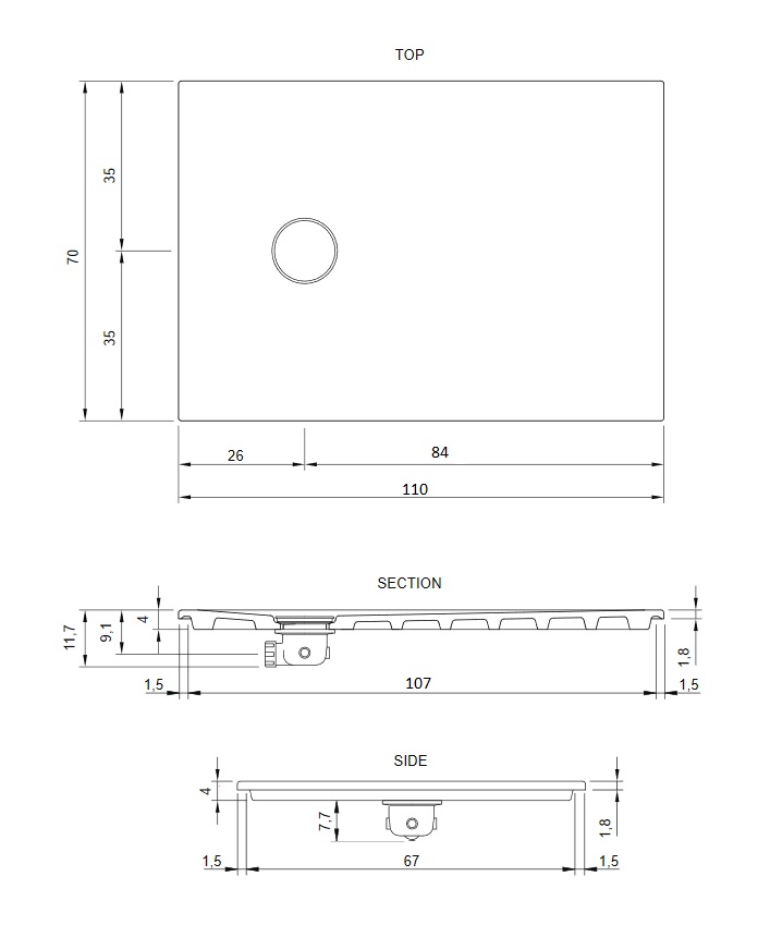 NIC Design Piano Brodzik wpuszczany 70x110 cm Biały 002524.001