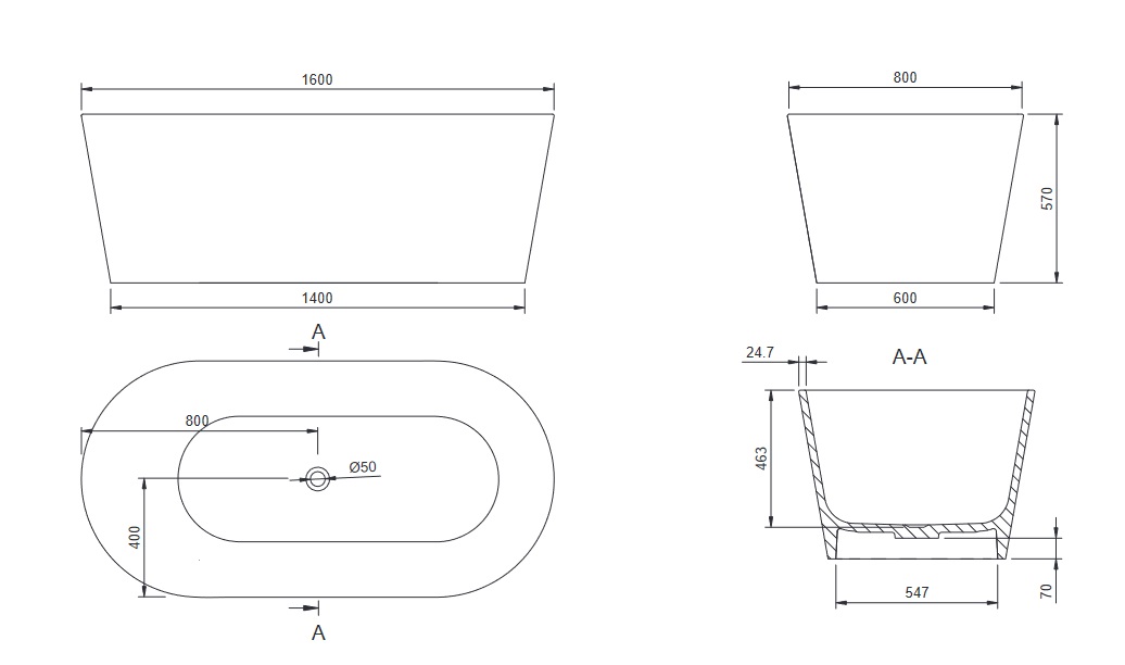 Cena dotyczy wanny wolnostojącej z korkiem i syfonem