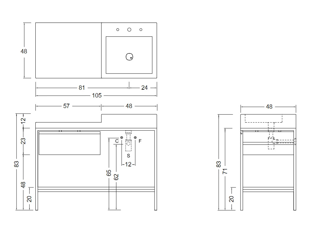 NIC Design Semplice 105 Umywalka ceramiczna z blatem po lewej 105x48 cm Biały 001381CF.001