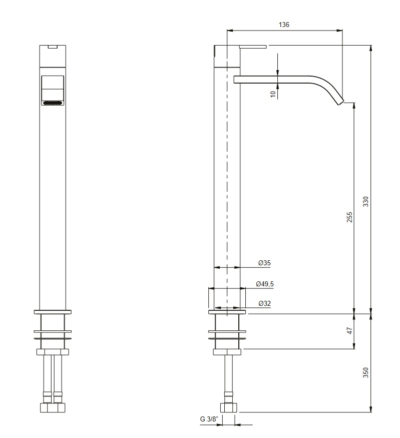 wysokość wylewki: 255 mm