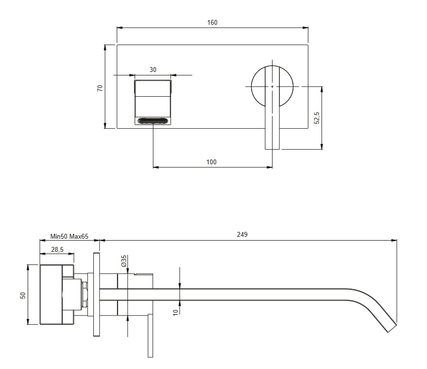 Bateria umywalkowa ścienna z wylewką z lewej strony