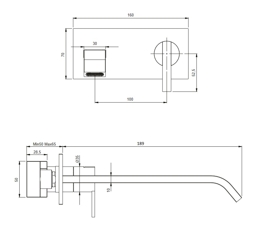 wysięg wylewki: 189 mm