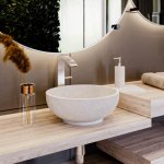 Alanad Apo Umywalka kamienna okrągła nablatowa Ø 380 mm biały marmur KUN-006BI