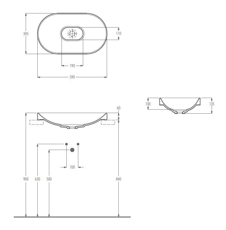 Eto ByeBye Umywalka wpuszczana w blat 59x34,5 cm Arancia Matt 01319013