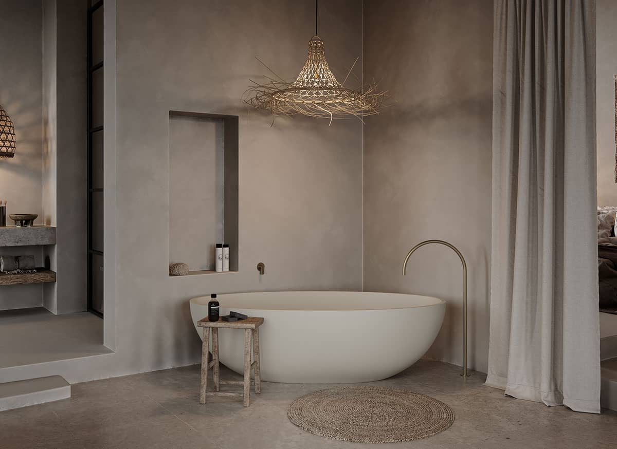 Ręcznie wyprodukowana wanna wolnostojąca z otworem przelewowym.