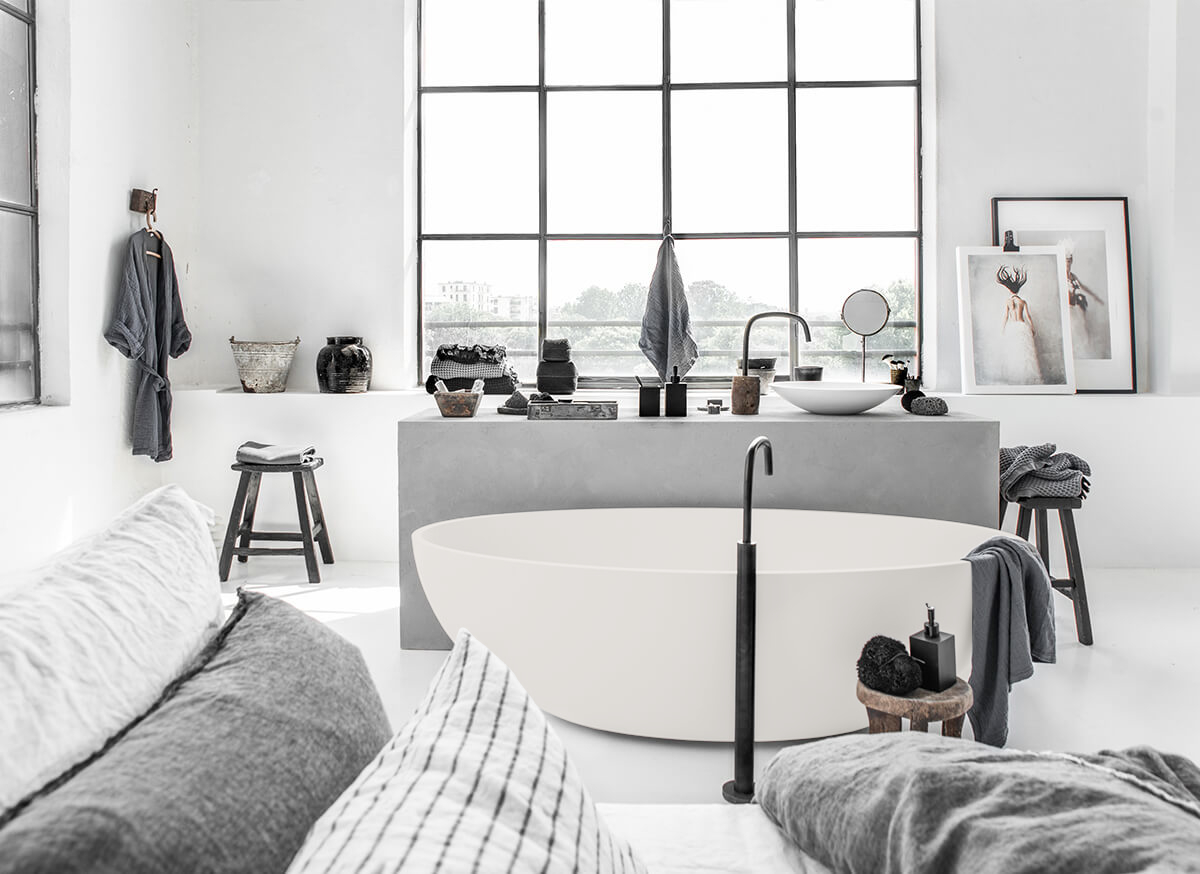 Ręcznie wyprodukowana wanna wolnostojąca z otworem przelewowym.