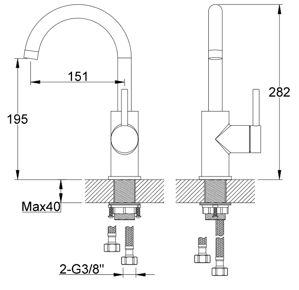 KOHLMAN Axel Bateria umywalkowa 1-otworowa z obrotową wylewką czarna QB150AB