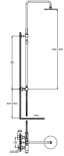 KOHLMAN Axel zestaw prysznicowy natynkowy czarny mat QW276AB