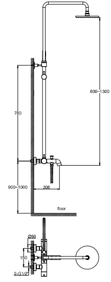 KOHLMAN Axel zestaw wannowo-prysznicowy natynkowy czarny mat QW277AB