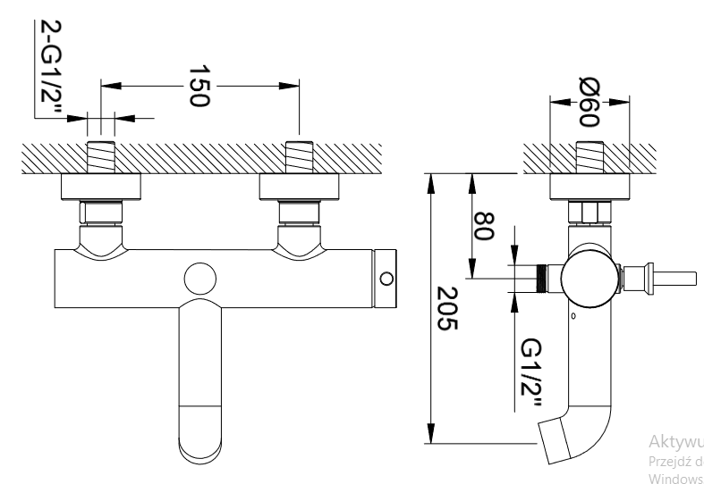 KOHLMAN Axel Bateria wannowo-prysznicowa natynkowa chrom QW110A
