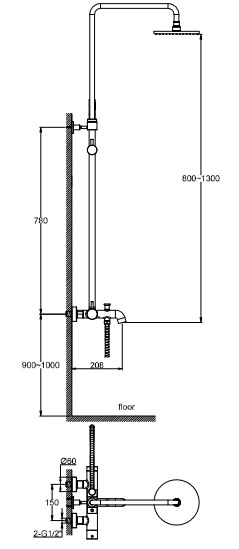 KOHLMAN Axel zestaw wannowo-prysznicowy natynkowy chrom QW277A