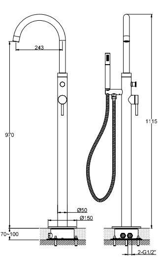 Wysokość wylewki: 970 mm