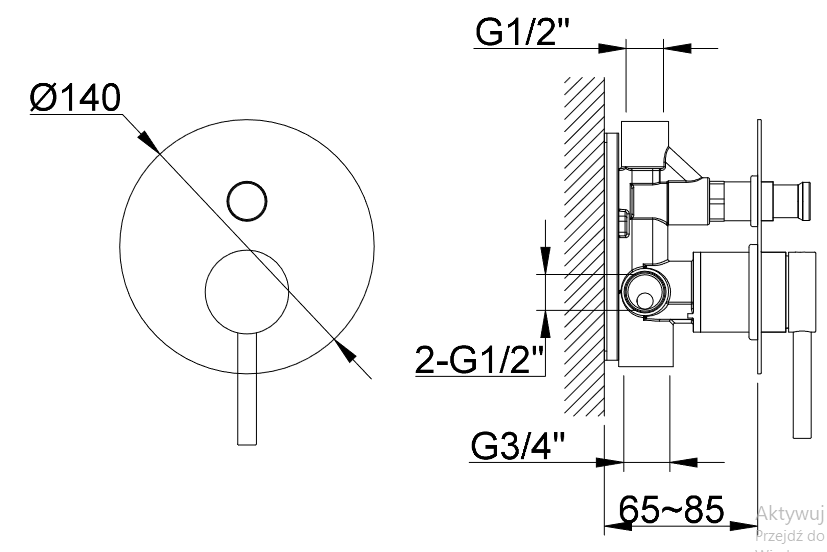 Wymiary: Średnica rozety: ∅140 Cena dotyczy zestawu QW210AR20.