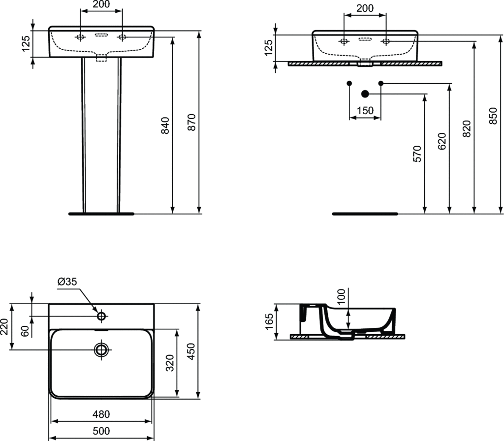 Ideal Standard Conca Umywalka nablatowa/ścienna 500x450 mm Biały T369001