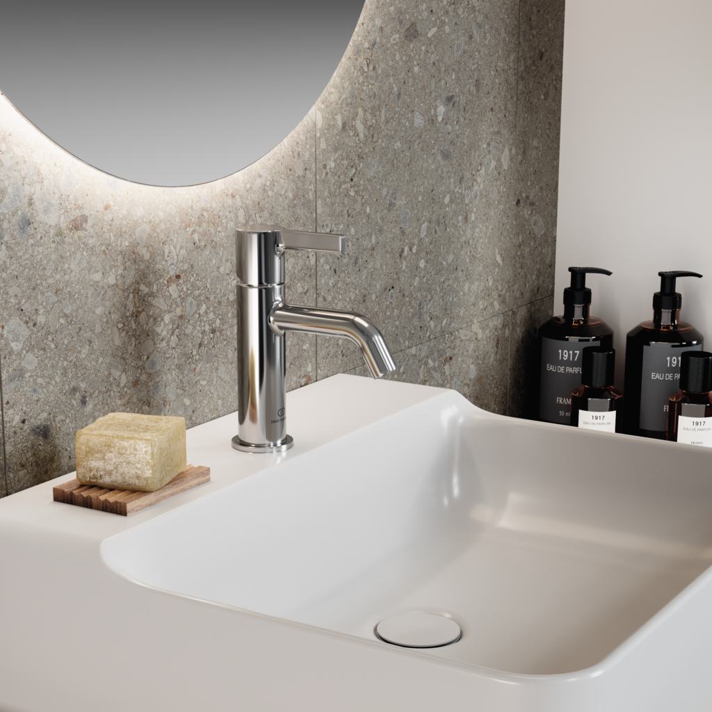 - Projektowy zawór odcinający kątowy (przyłącze wody G1 / 2, przyłącze z mieszaczem 10 mm / G3 / 8) - 1 szt.: A3491AA