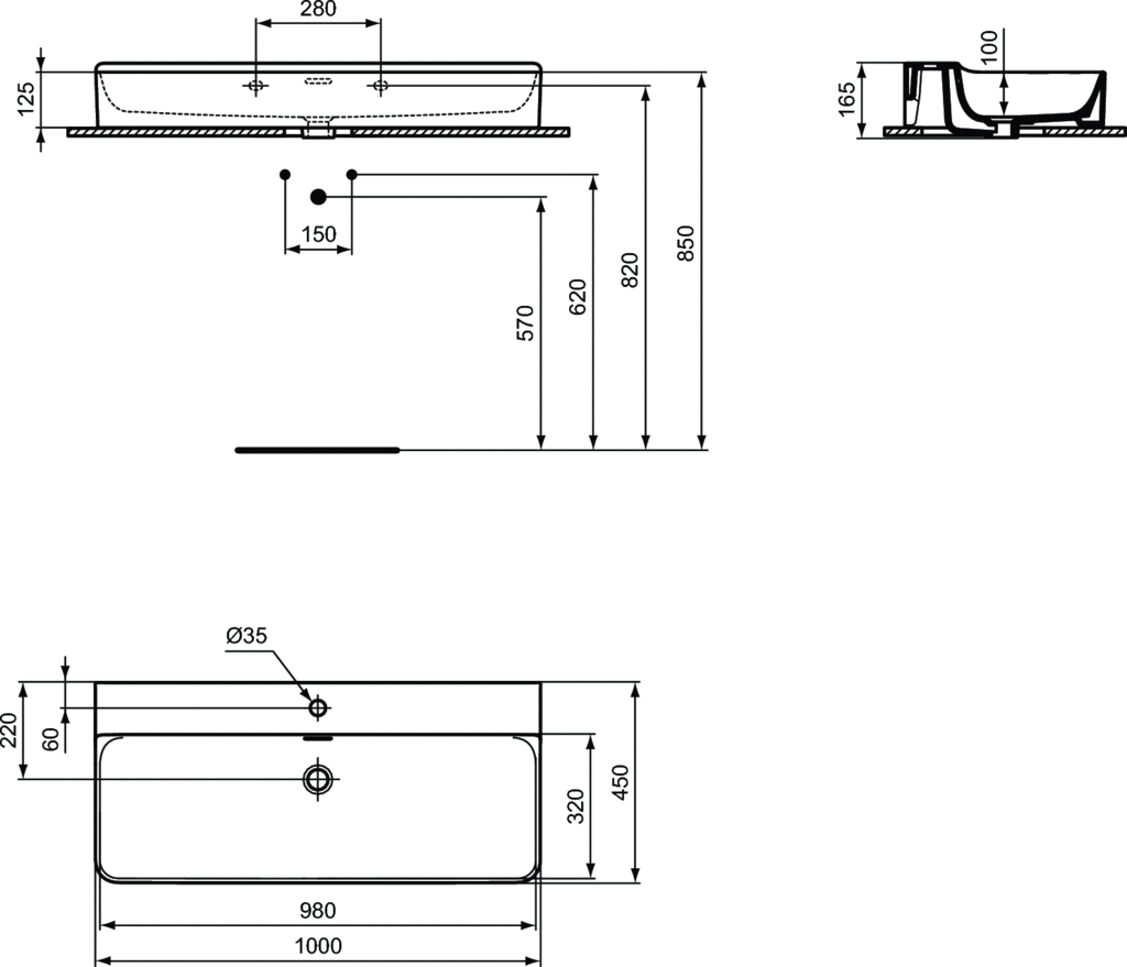 Ideal Standard Conca Umywalka nablatowa/ścienna 1000x450 mm Biały T369301