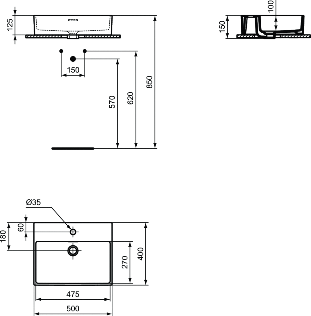 Ideal Standard Extra Umywalka nablatowa 500x400 mm Biały T374101