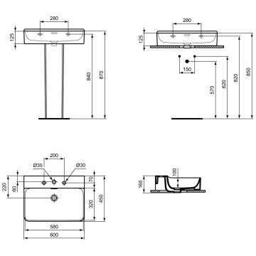 Ideal Standard Conca Umywalka ścienna 600x450 mm 3-otworowa Biały T378801