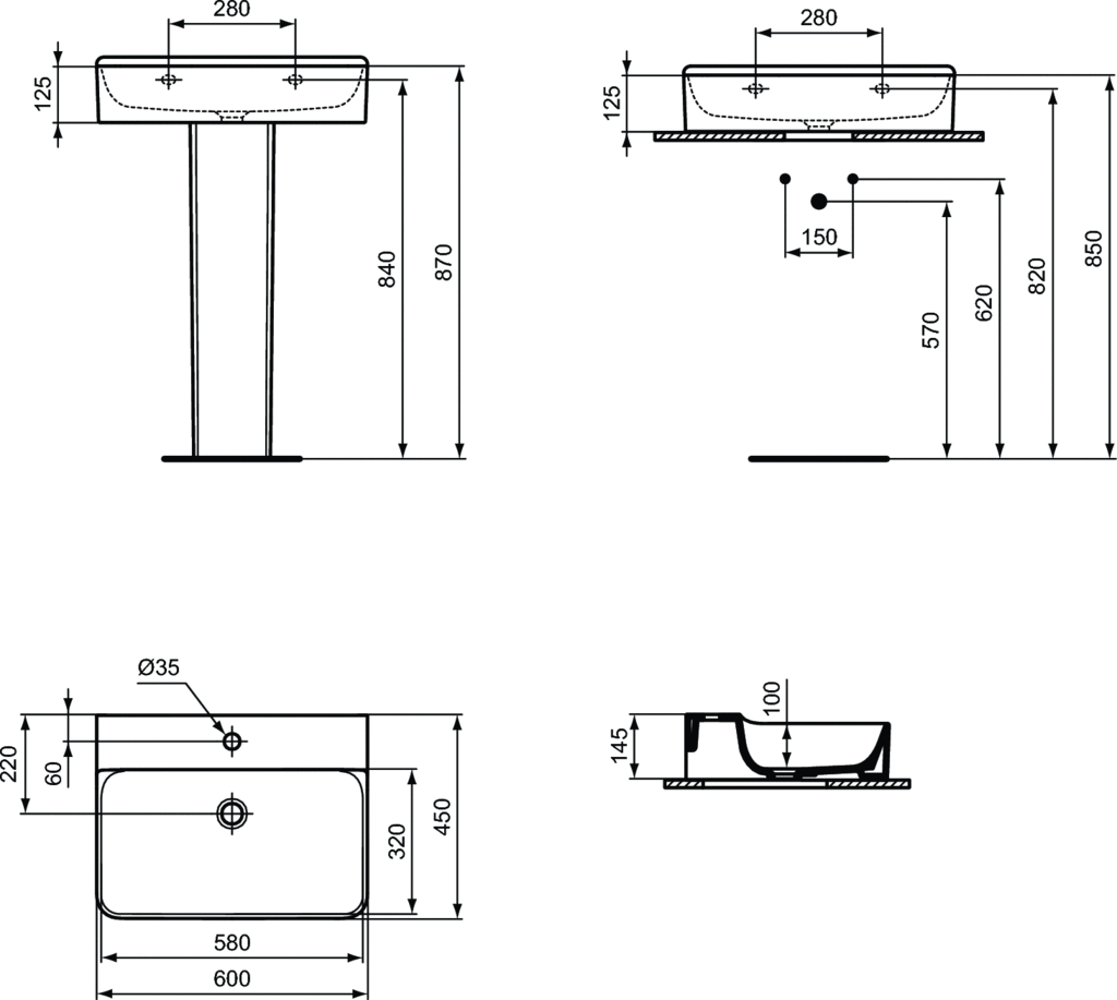 Umywalka mocowana do ściany (szlifowana od spodu)