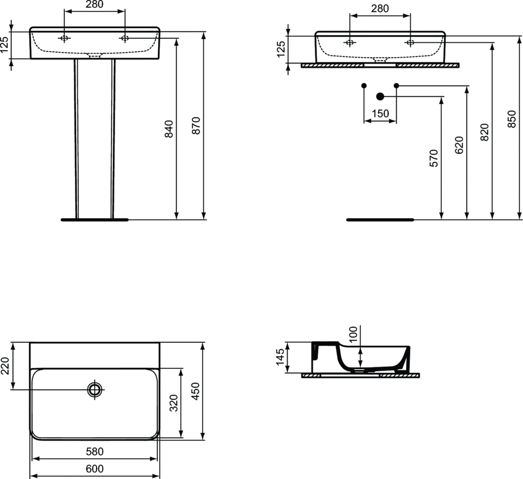 Ideal Standard Conca Umywalka ścienna 600x450 mm bez otworu na baterię Biały T382501
