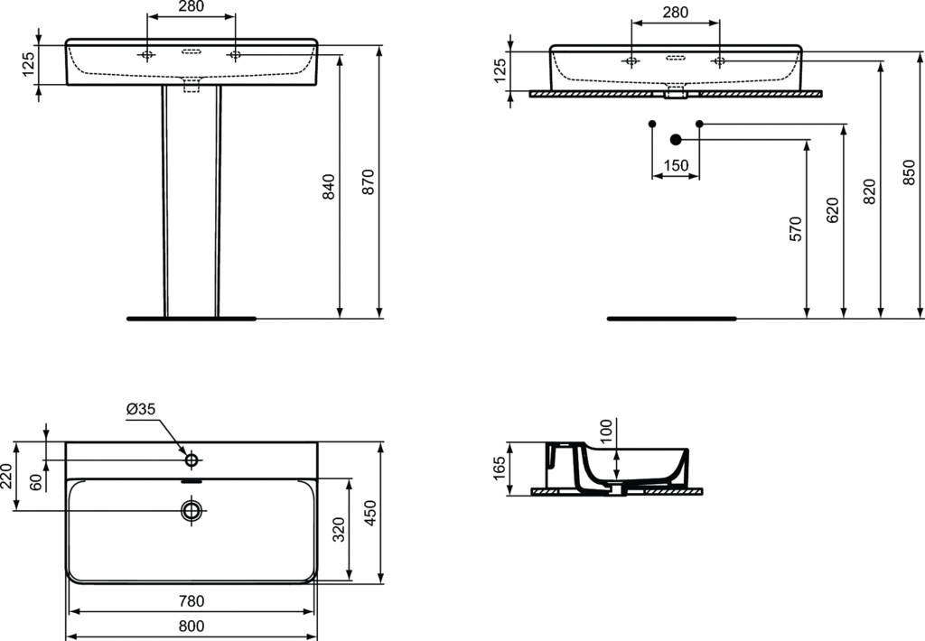 Ideal Standard Conca Umywalka ścienna 800x450 mm z otworem na baterię Biały T382601
