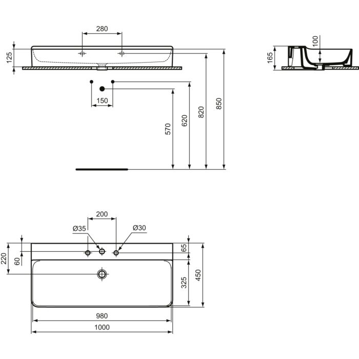 Ideal Standard Conca Umywalka ścienna 1000x450 mm z 3-otworami na baterię Biały T383601