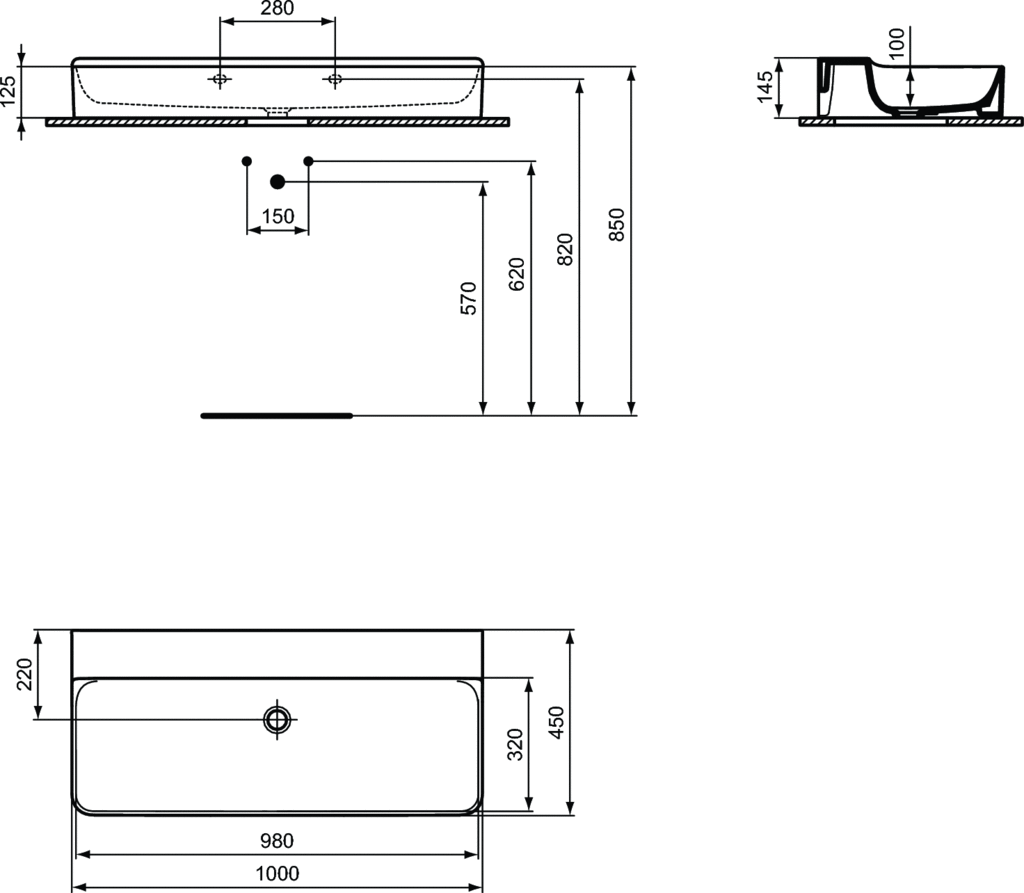 Ideal Standard Conca Umywalka ścienna 1000x450 mm bez otworu na baterię Biały T383701