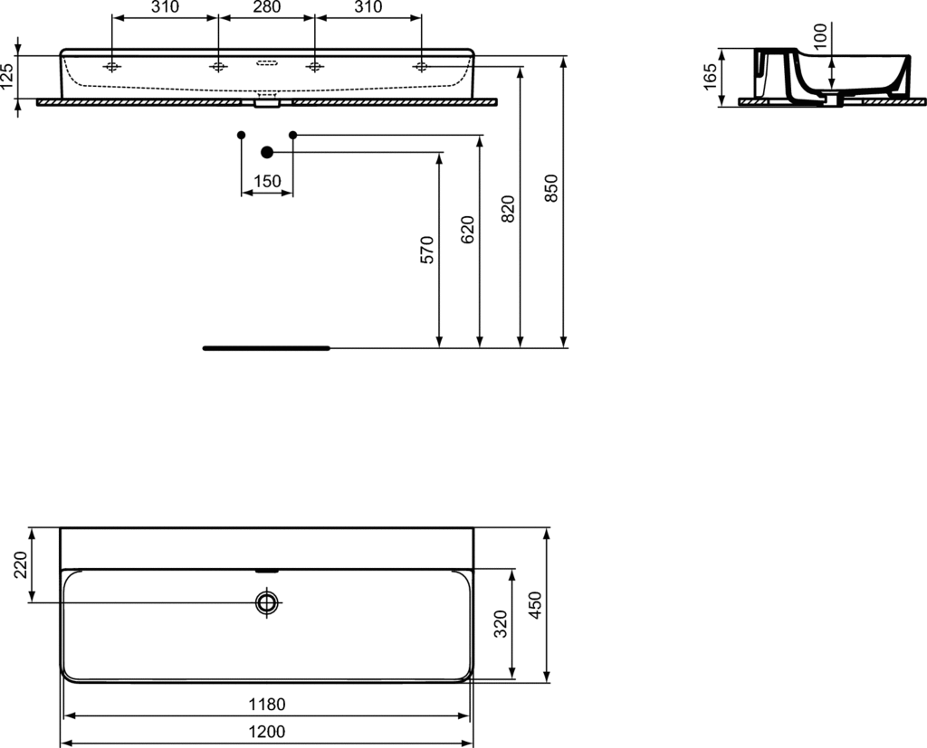 Ideal Standard Conca Umywalka ścienna 1200x450 mm bez otworu na baterię Biały T384101