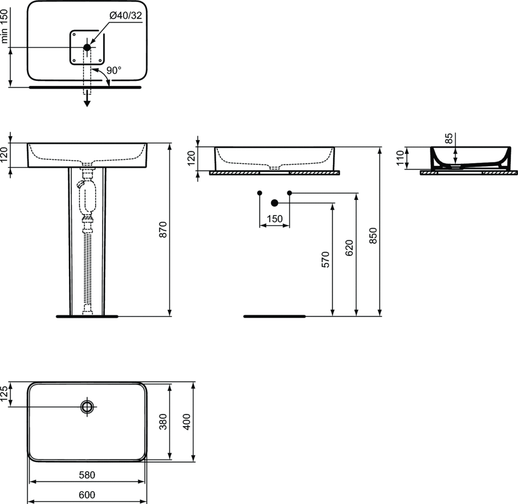 Moocwania do montażu umywalki, wraz z syfonem i przyłączem do odpływu
