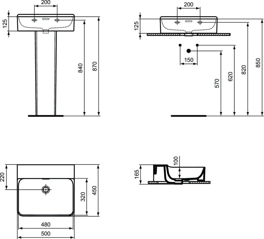 Moocwania do montażu umywalki, wraz z syfonem i przyłączem do odpływu