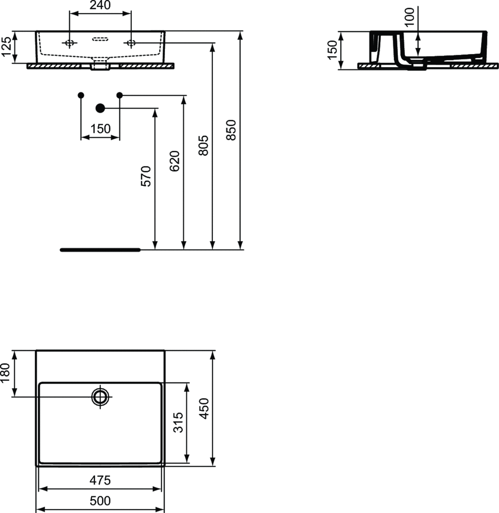 Umywalka mocowana do ściany (szlifowana od spodu)
