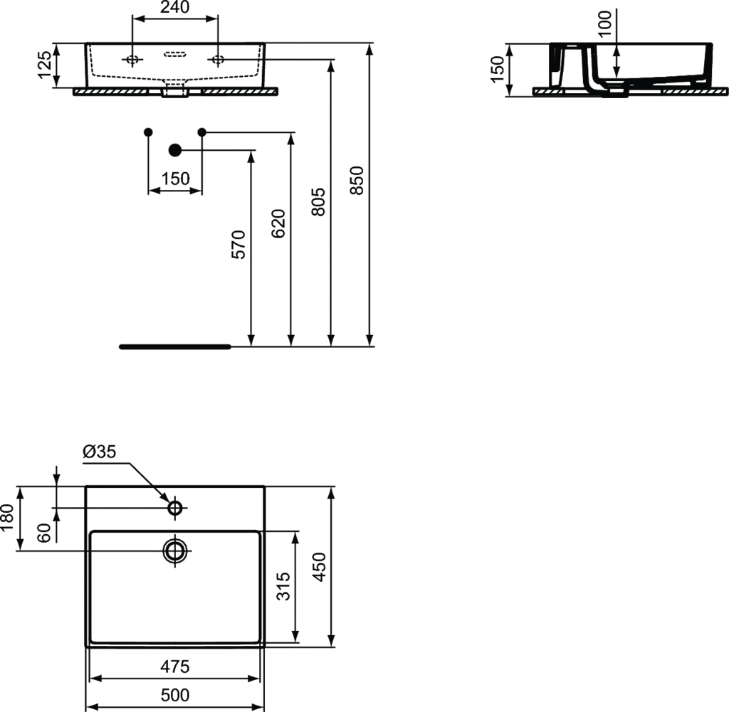 Umywalka mocowana do ściany (szlifowana od spodu)