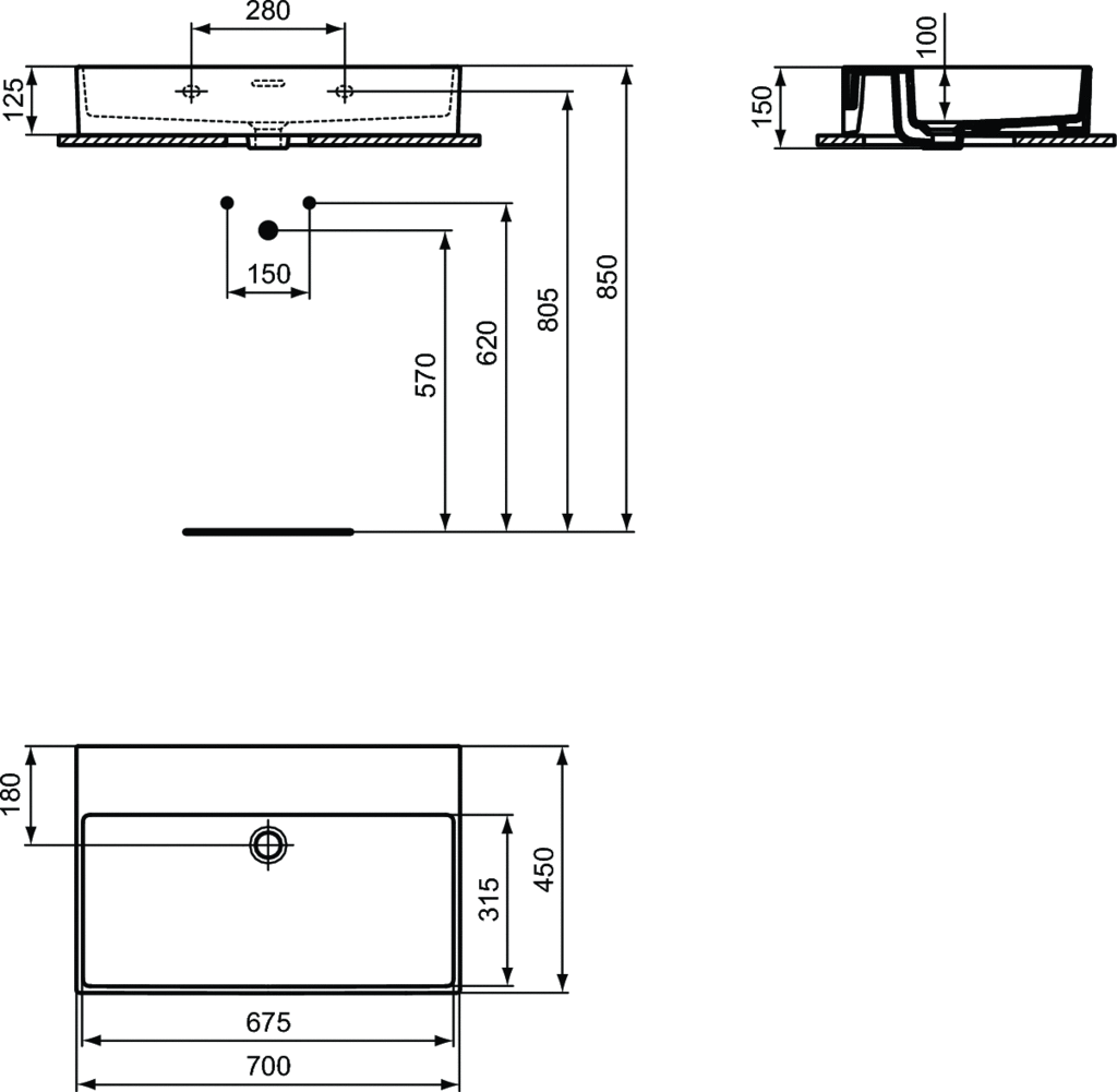 Umywalka mocowana do ściany (szlifowana od spodu).