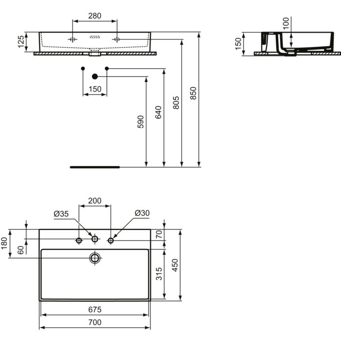 Ideal Standard Extra Umywalka ścienna 700x450 mm z 3-otworami na baterię Biały T389501