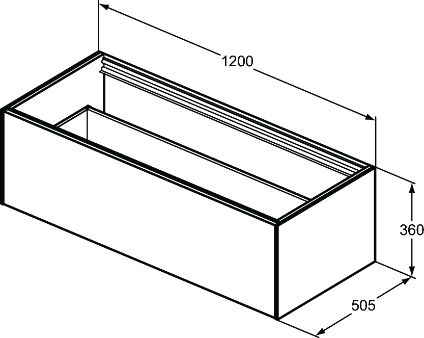 Wewnętrzne wykończenie w kolorze antracyt, dopasowane do koloru prowadnic szuflady.