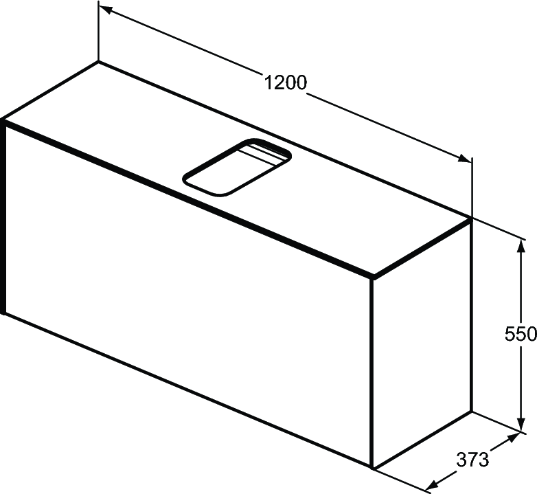 Szafka pod umywalkę: centralny otwór w blacie, 1 zewnętrzna i 1 wewnętrzna szuflada.