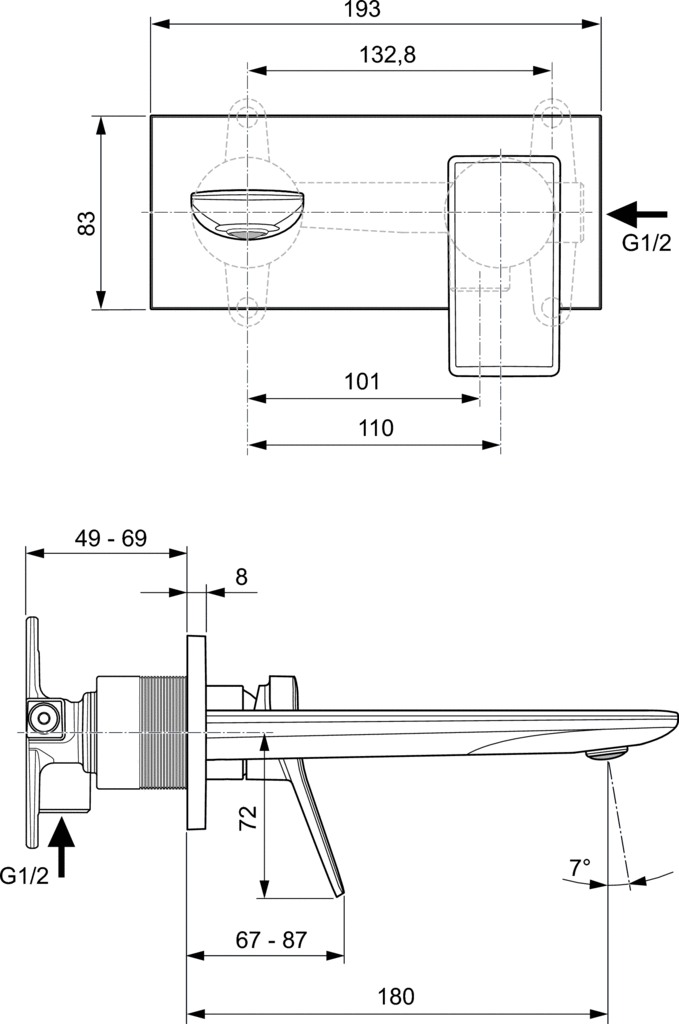 Ideal Standard Conca Bateria umywalkowa podtynkowa 180 mm Chrom A7371AA