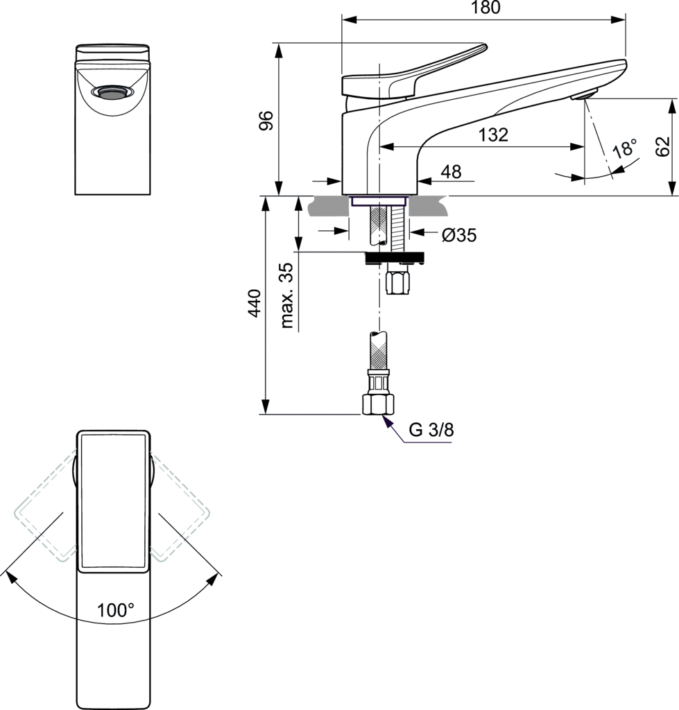 Ideal Standard Conca Bateria umywalkowa jednouchwytowa bez korka Gold BC754A2