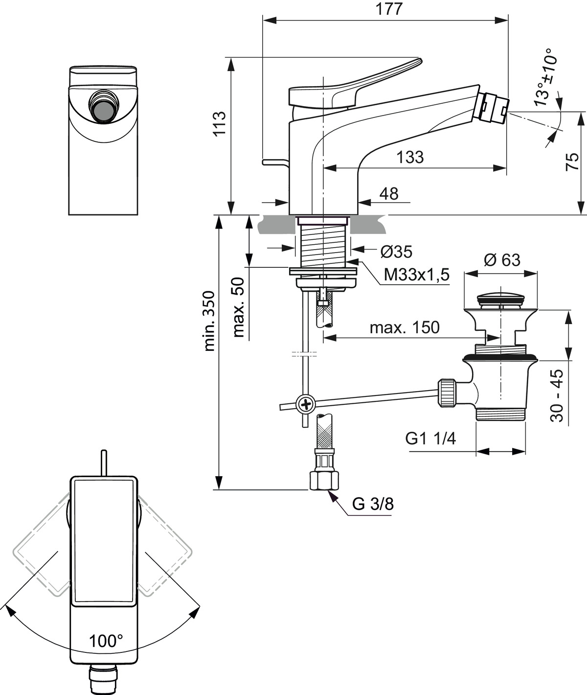 Ideal Standard Conca Bateria bidetowa jednouchwytowa z korkiem automatycznym Nikiel BC760GN