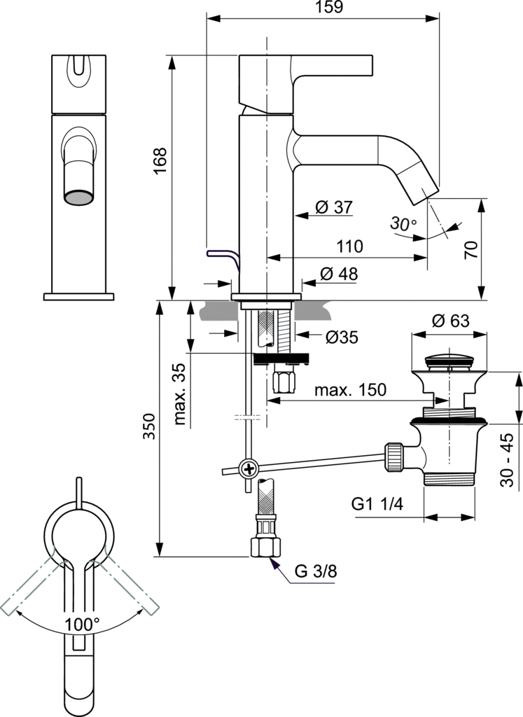 Ideal Standard Joy Bateria umywalkowa z korkiem automatycznym Czarny mat BC775A5
