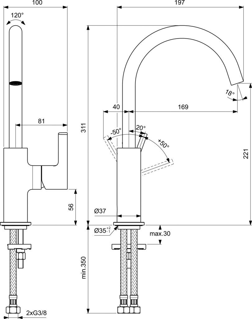 Ideal Standard Joy Bateria umywalkowa z wysoką wylewką bez korka Nikiel BC778GN